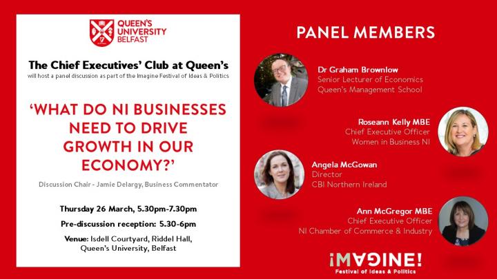 The Chief Executives’ Club at Queen’s has brought together a panel that includes leaders of business representative groups, to discuss a range of key issues affecting business.