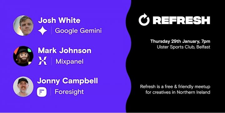 Join us at the Ulster Sports Club for an evening of design inspiration and networking, with talks by Josh White (UX Designer @ Google Gemini), Mark Johnson (Principal Designer @ MIxpanel) and local legend Jonny Campbell (Co-Founder @ Foresight)